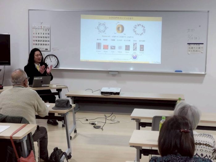 2026年1月22日(木)に岡山大学薬学部とアイ薬局が行っている健康教室に参加させていただき、シクロデキストリンや調“身”料®︎ドンマインについてお話しさせていただきました。